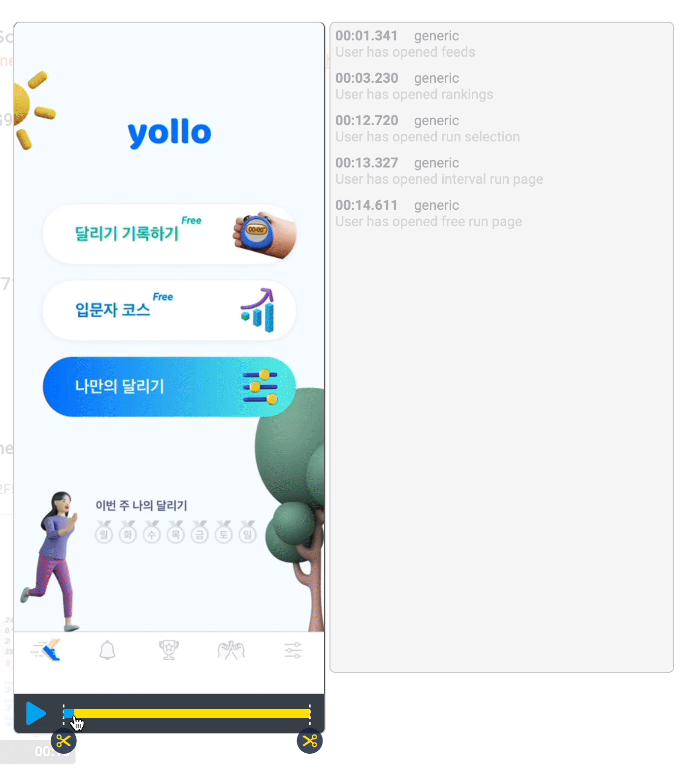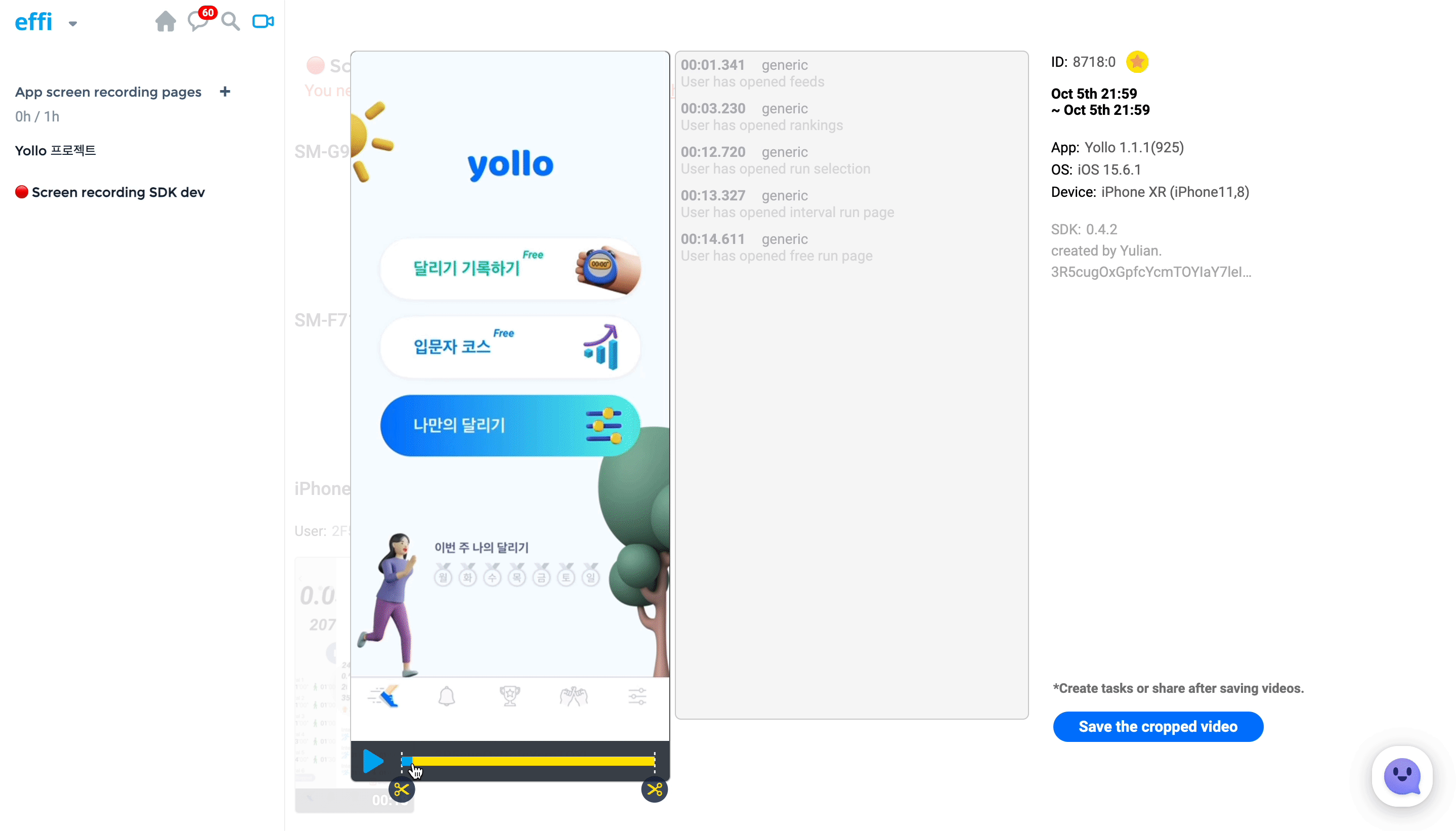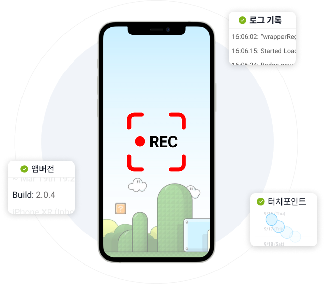 터치포인트도 함께 녹화되기 때문에, 개발자들이 녹화된 영상의 행동 궤적을 쉽게 따라갈 수 있습니다.