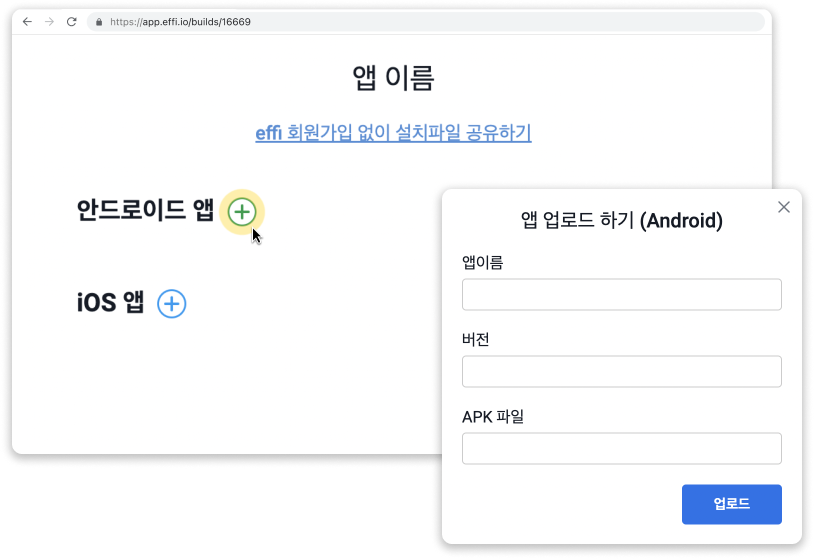 APK/IPA 파일을 업로드 하고 링크만 공유하면 끝!